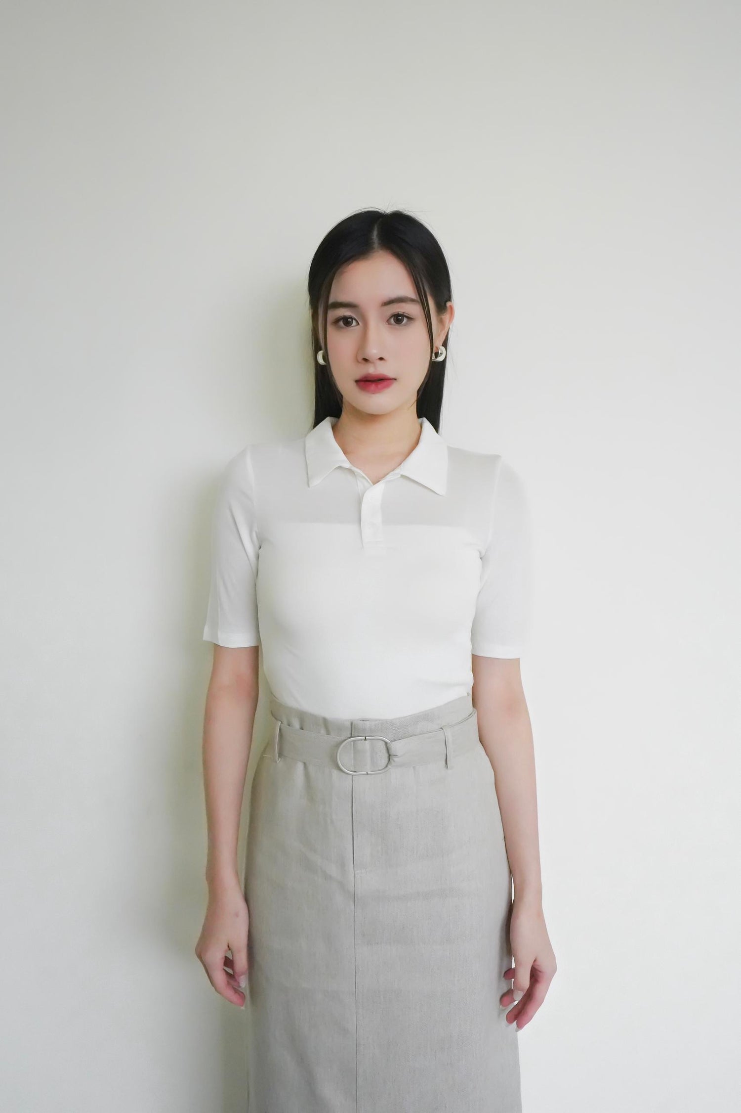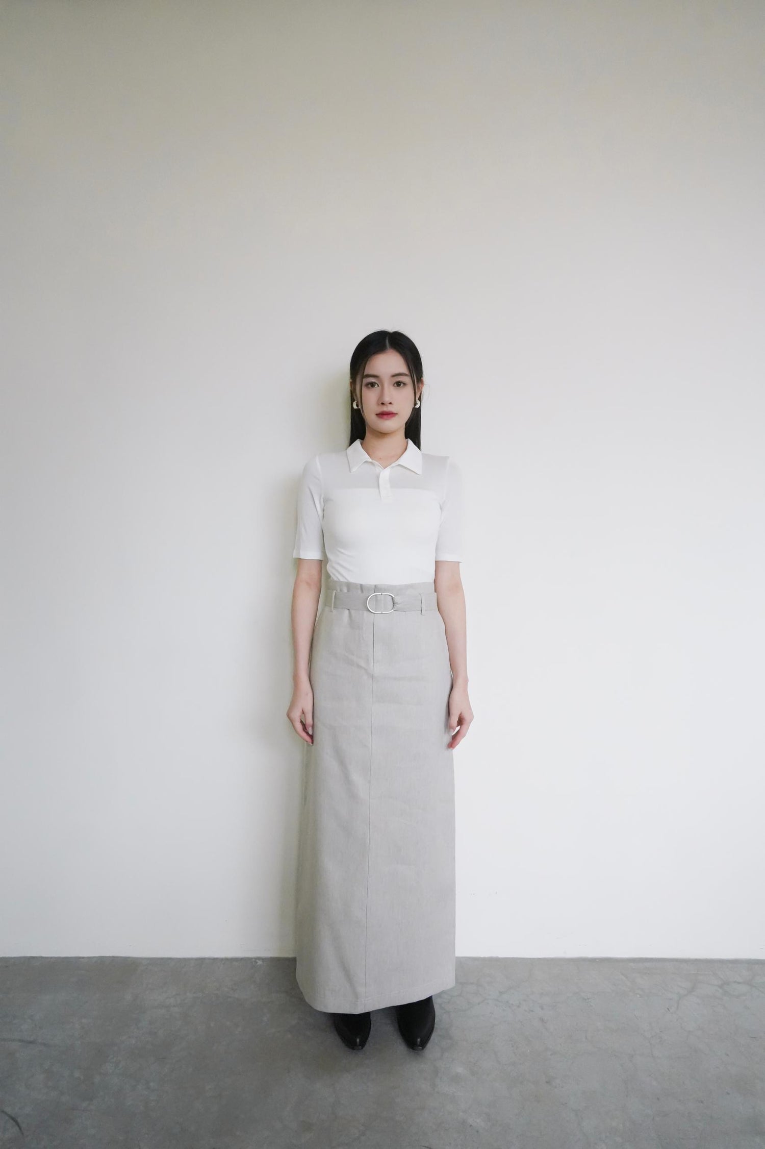 Cotton-linen pencil skirt with belt