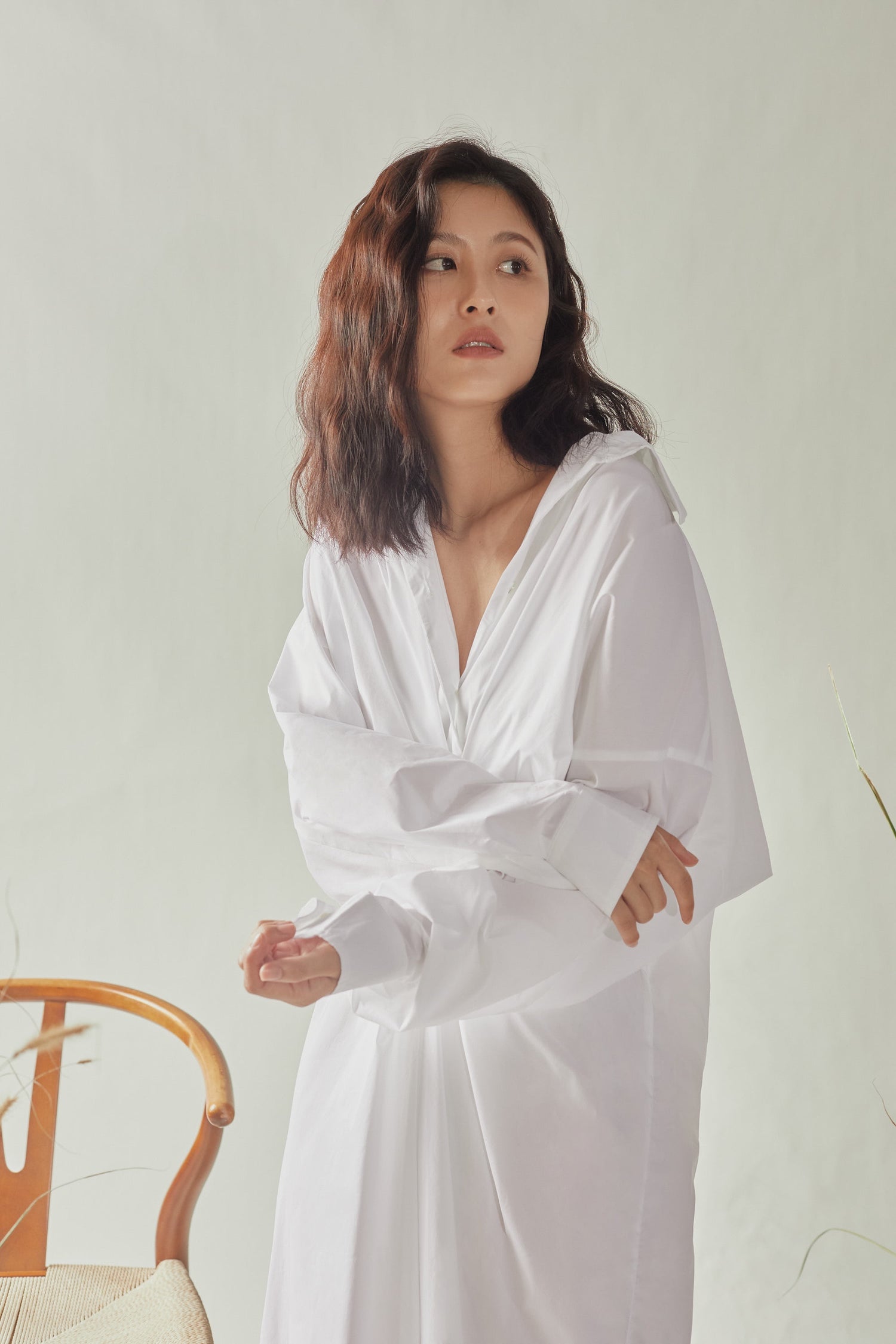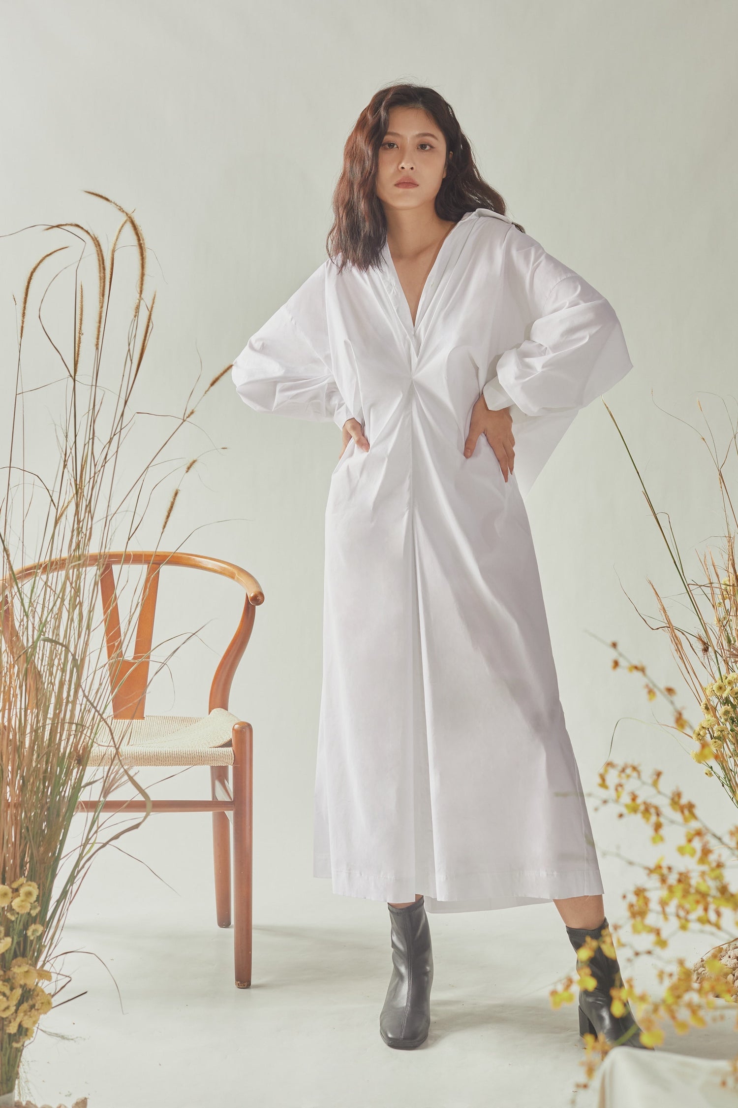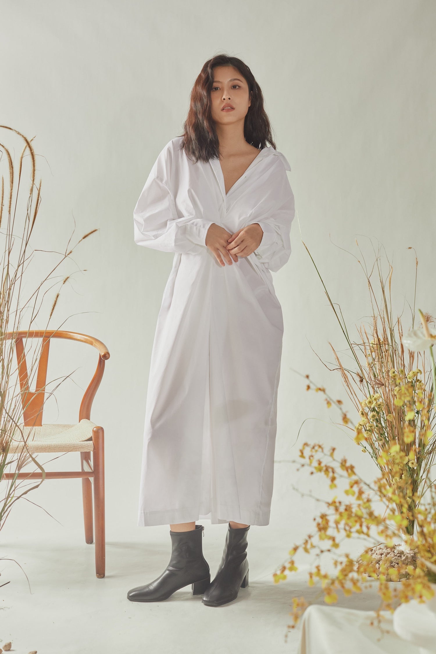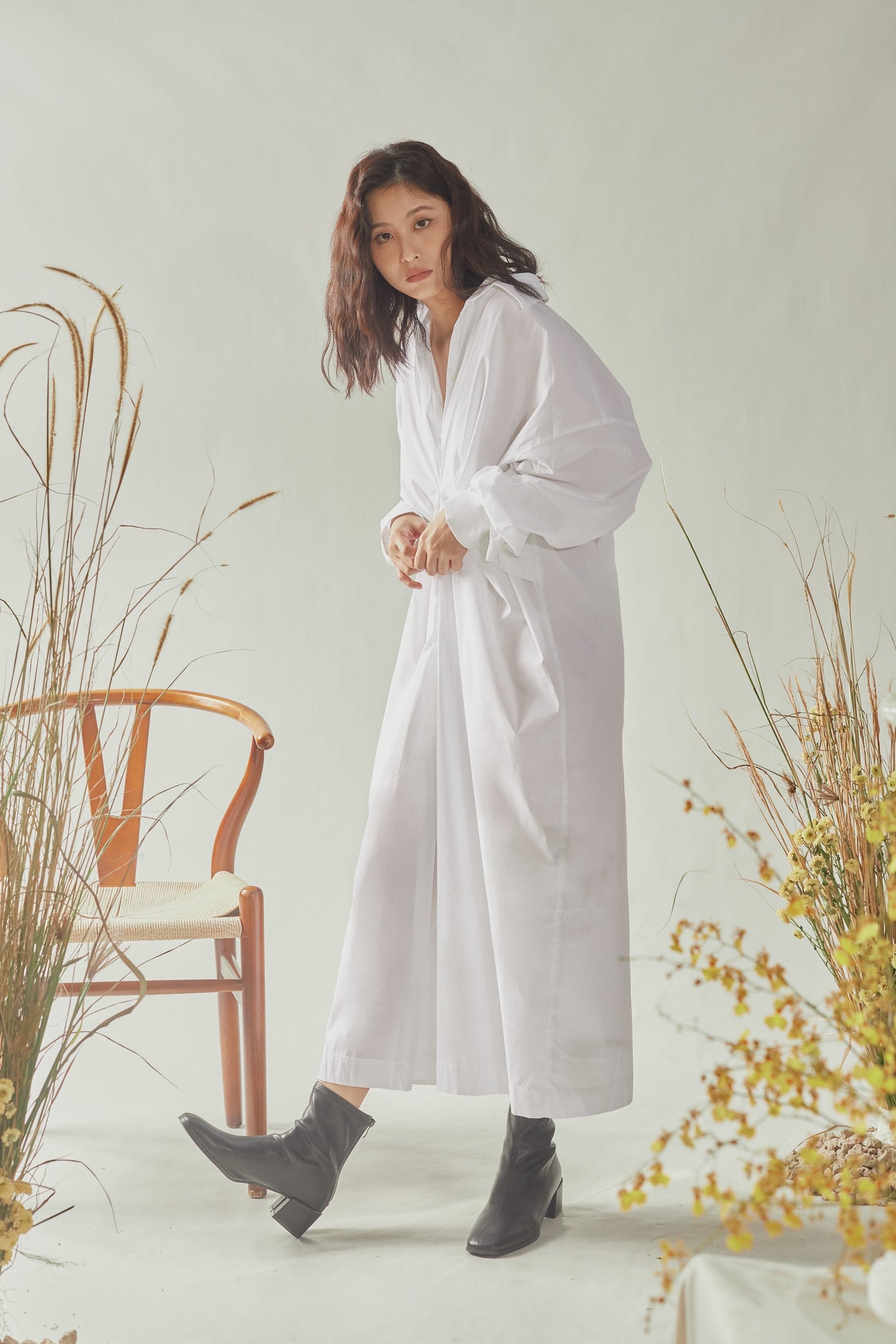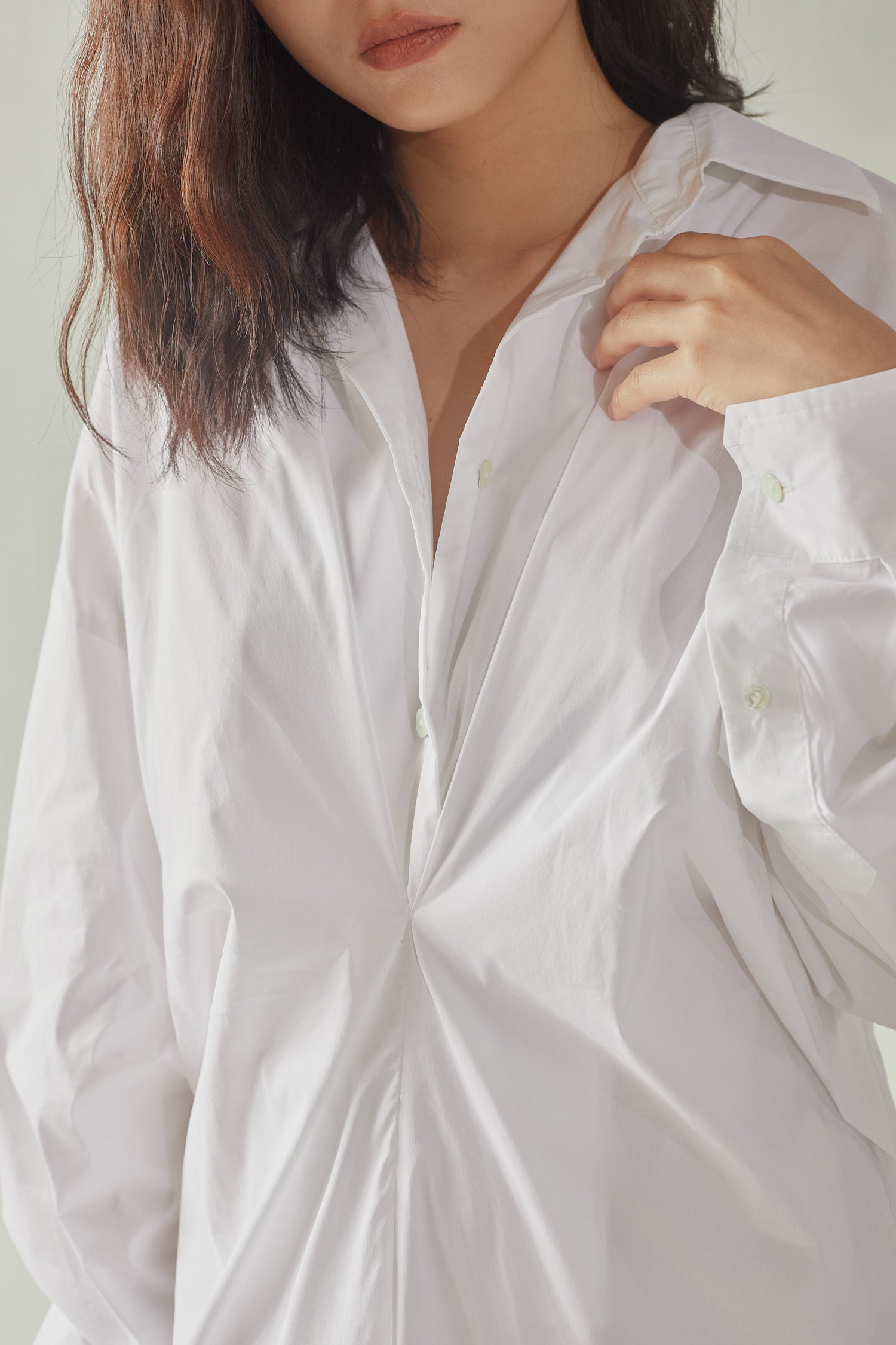Front Gathered Oversized Shirt Dress