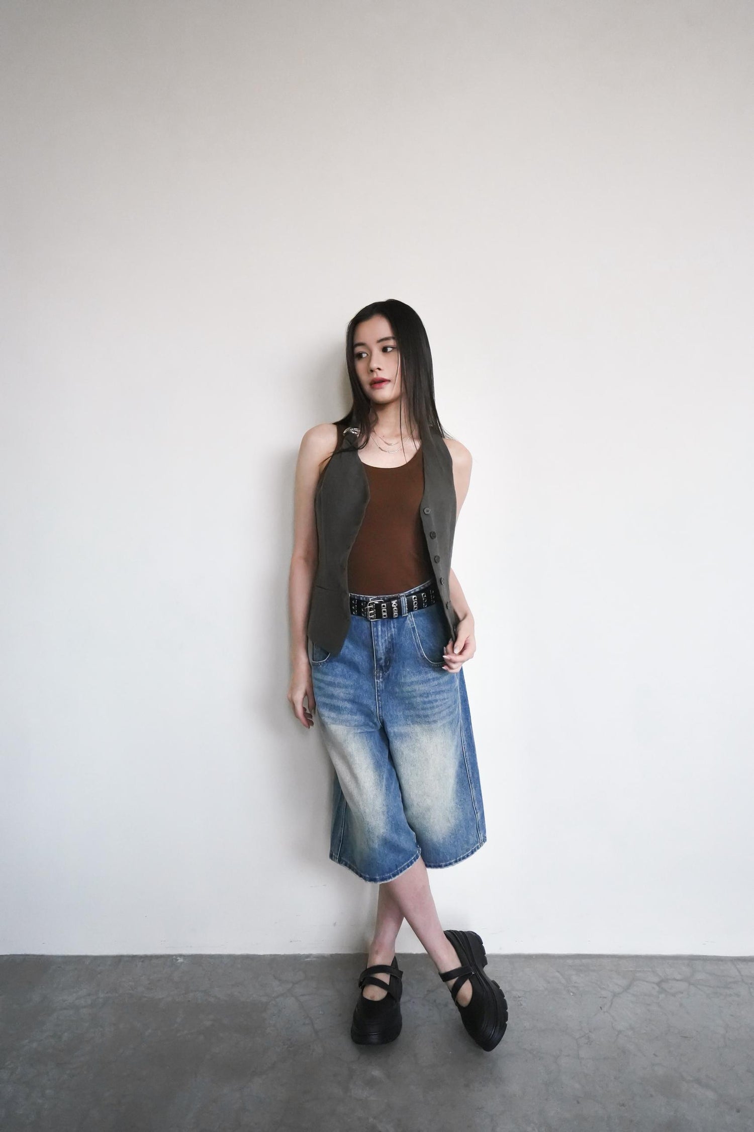 Knee-length denim jeans
