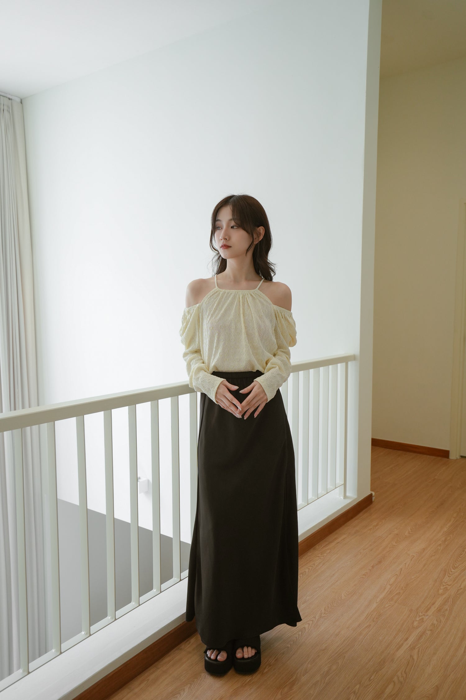 Off Neck Twisted Shoulder Top