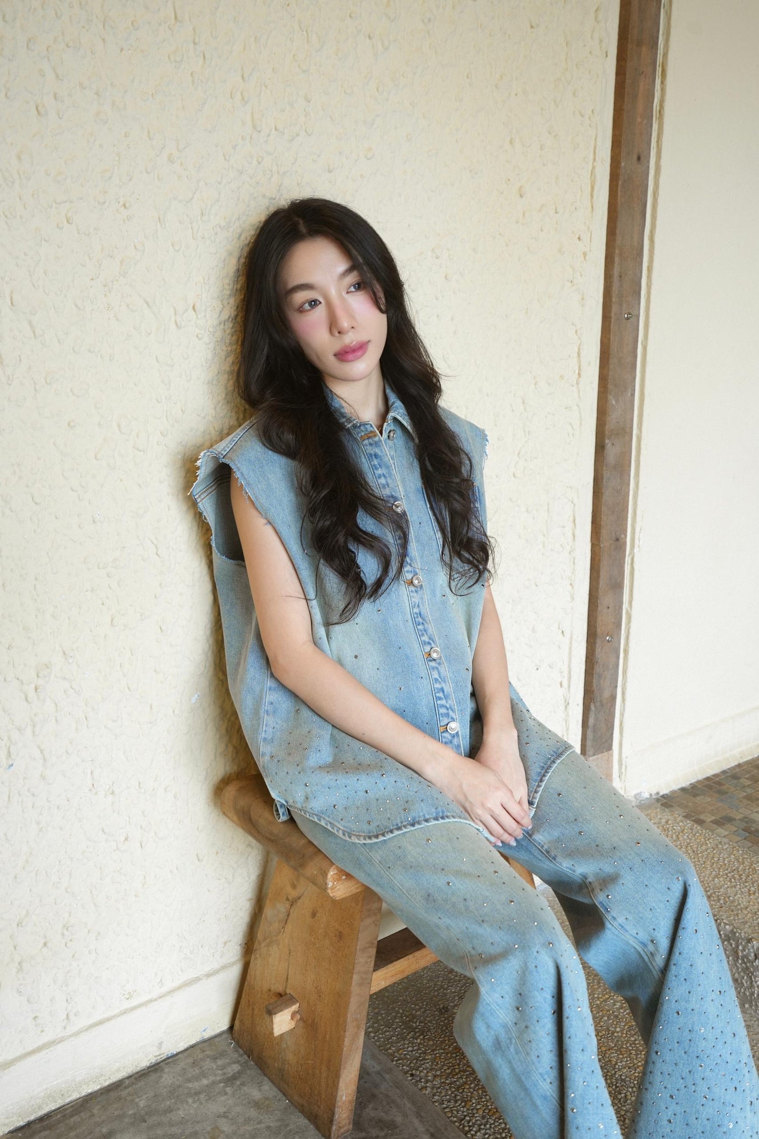Rhinestone Denim Vest