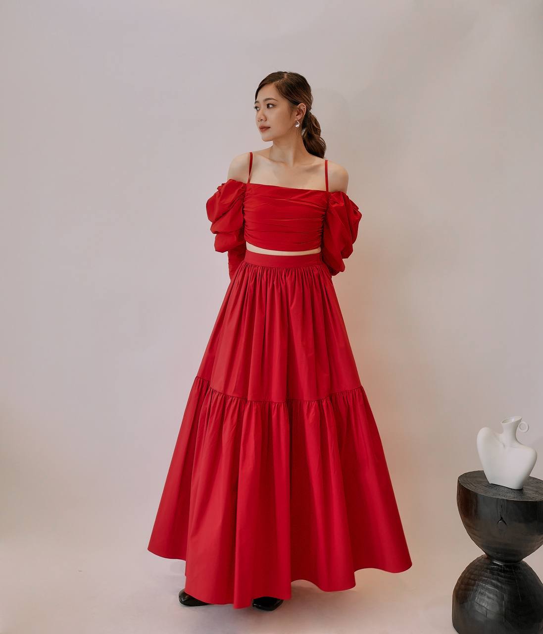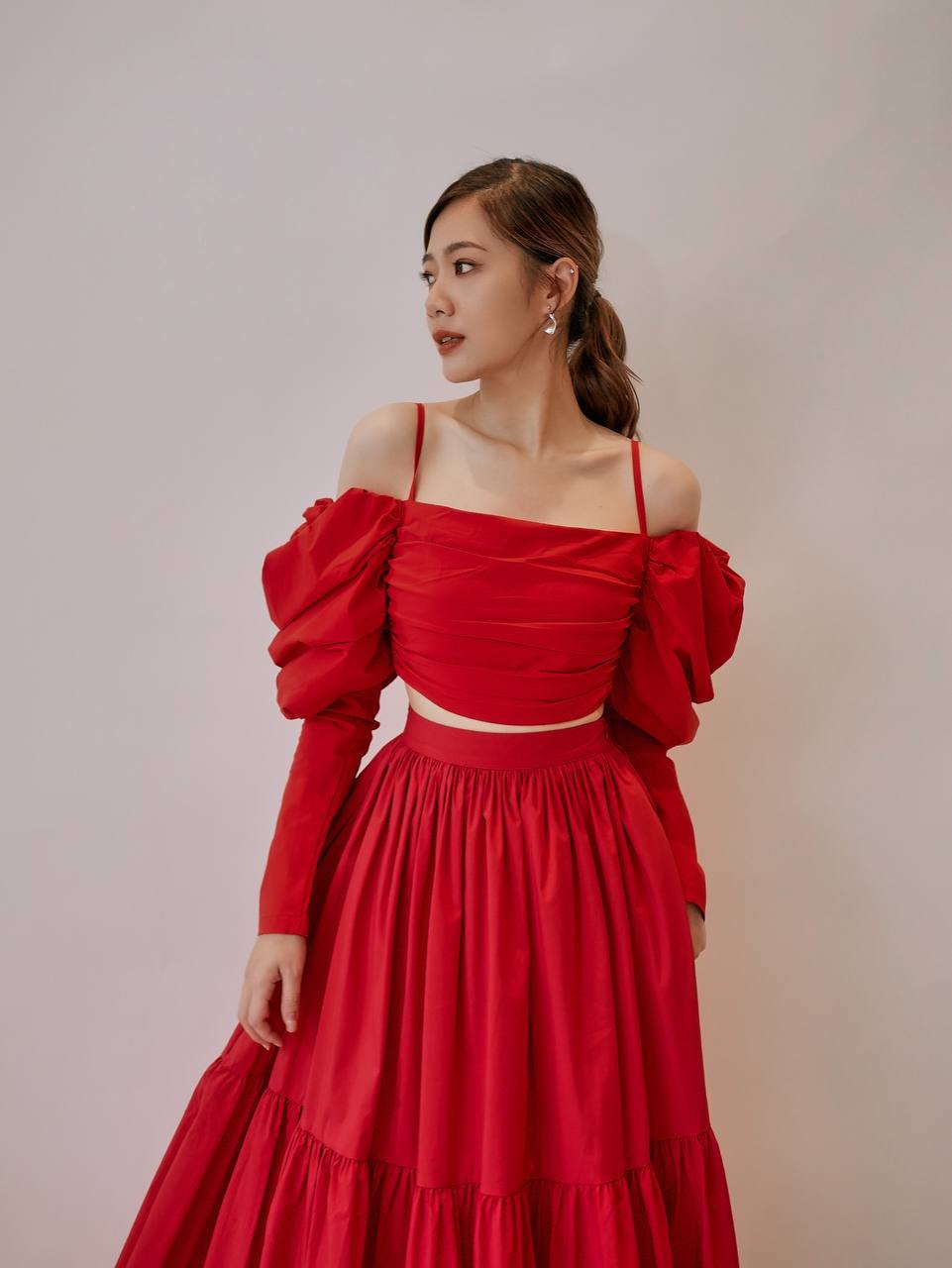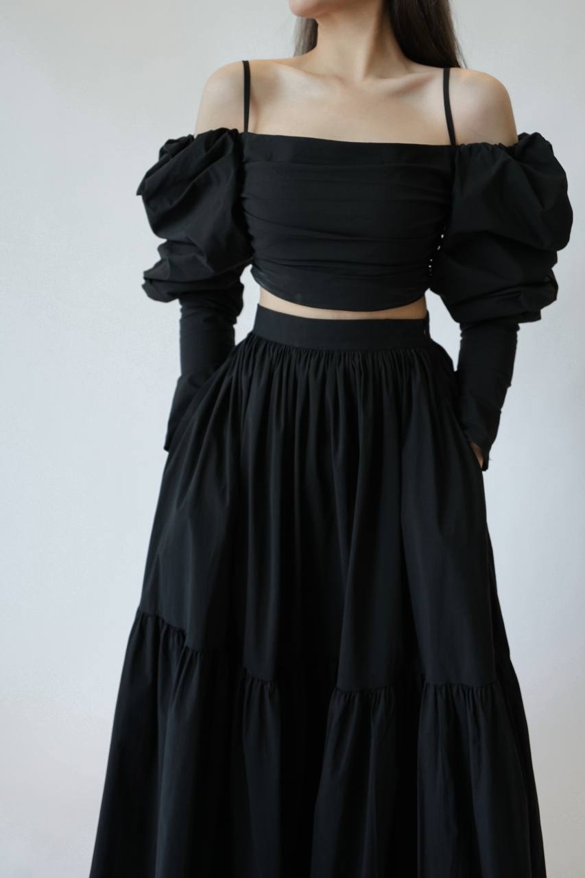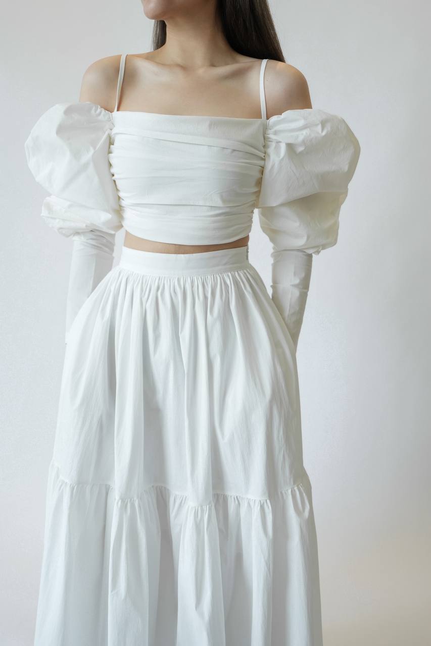 Wrinkle Layer Puff-Sleeve Set